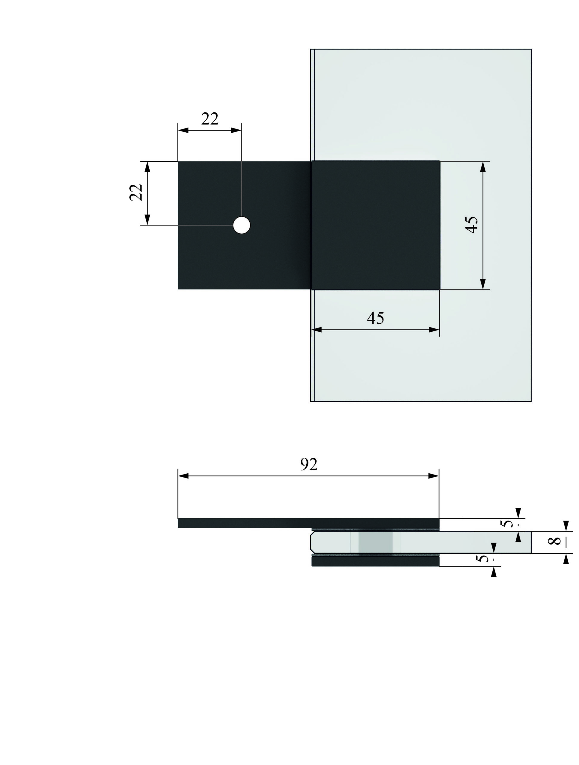 Коннектор 180° стандарт стена – стекло